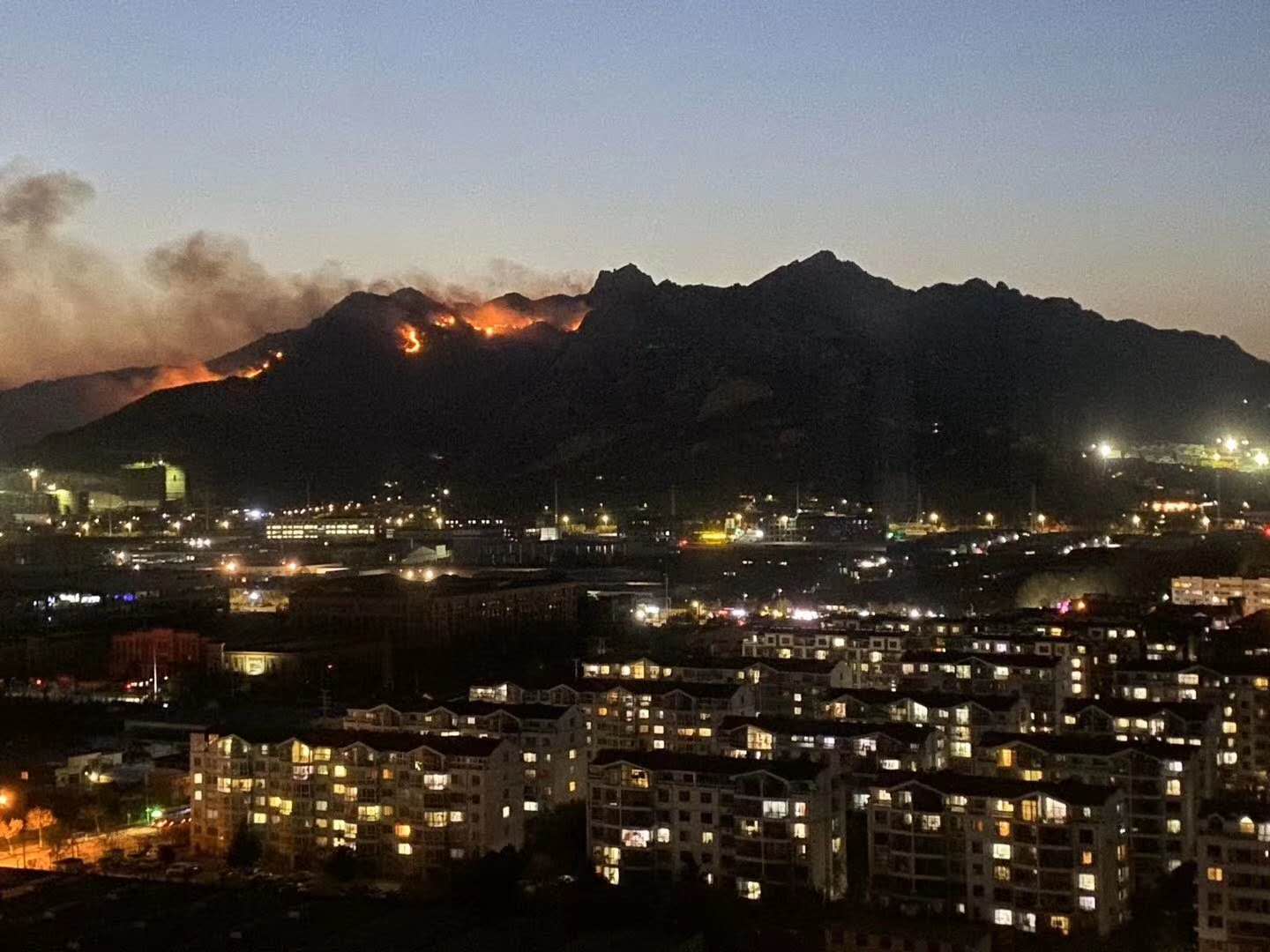 4月23日下午,黄岛区小珠山西坡突发大火,风很大,火势蔓延到山顶,又蔓延到南麓,十几里外能看到浓烟滚滚,山顶不时有火舌乱窜。救援队伍立即出动,附近很多单位员工和村民也迅速赶往现场参与救援。下为现场照片: